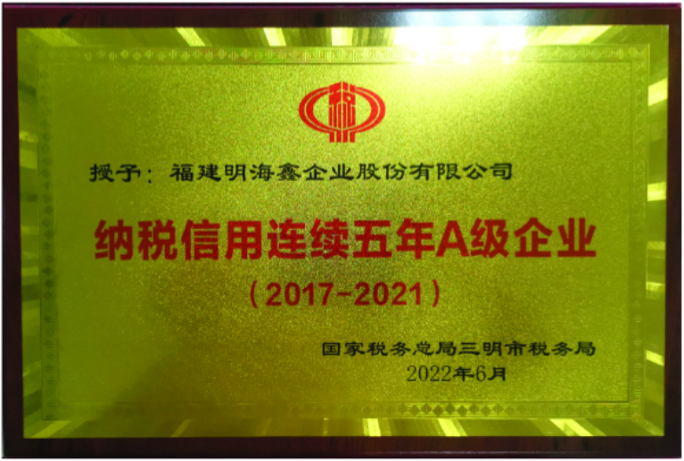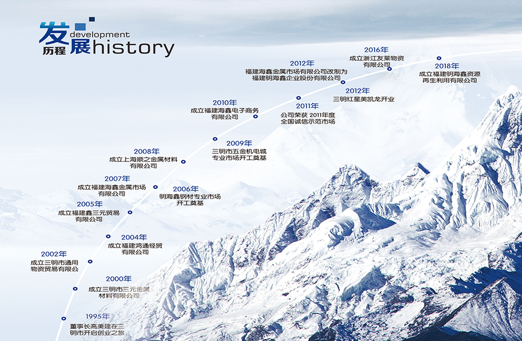 福建明海鑫企業股份有限公司前身成立于1989年,公司坐落在山清水秀的美麗三明,是集鋼貿、地產、電商、物業、倉儲物流、資源再生為一體的多元化公司,旗下9家子公司分別分布在上海、廣州、寧波、廈門、福州、泉州、三明等地。公司尊崇”踏實、拼博、責任“的企業精神,并以”誠信、服務、共贏“開創經營理念,打通了鋼鐵產業鏈的上下游,與全國各大鋼廠和知名企業保持長期穩定的合作關系,為及時交付合同提供了強大的供應保障。通過全體員工的不斷努力,公司銷售業績屢創新高,2022年銷售額達98億元。先后被國家工商行政管理總局評為2011年度“全國誠信示范市場”、中共福建省委評為“全省先進基層黨組織”、福建省工商行政管理局評為2014-2015年度“福建省守合同重信用企業”、國家稅務總局三明市稅務局評為“納稅信用連續五年A級企業”等榮譽稱號。