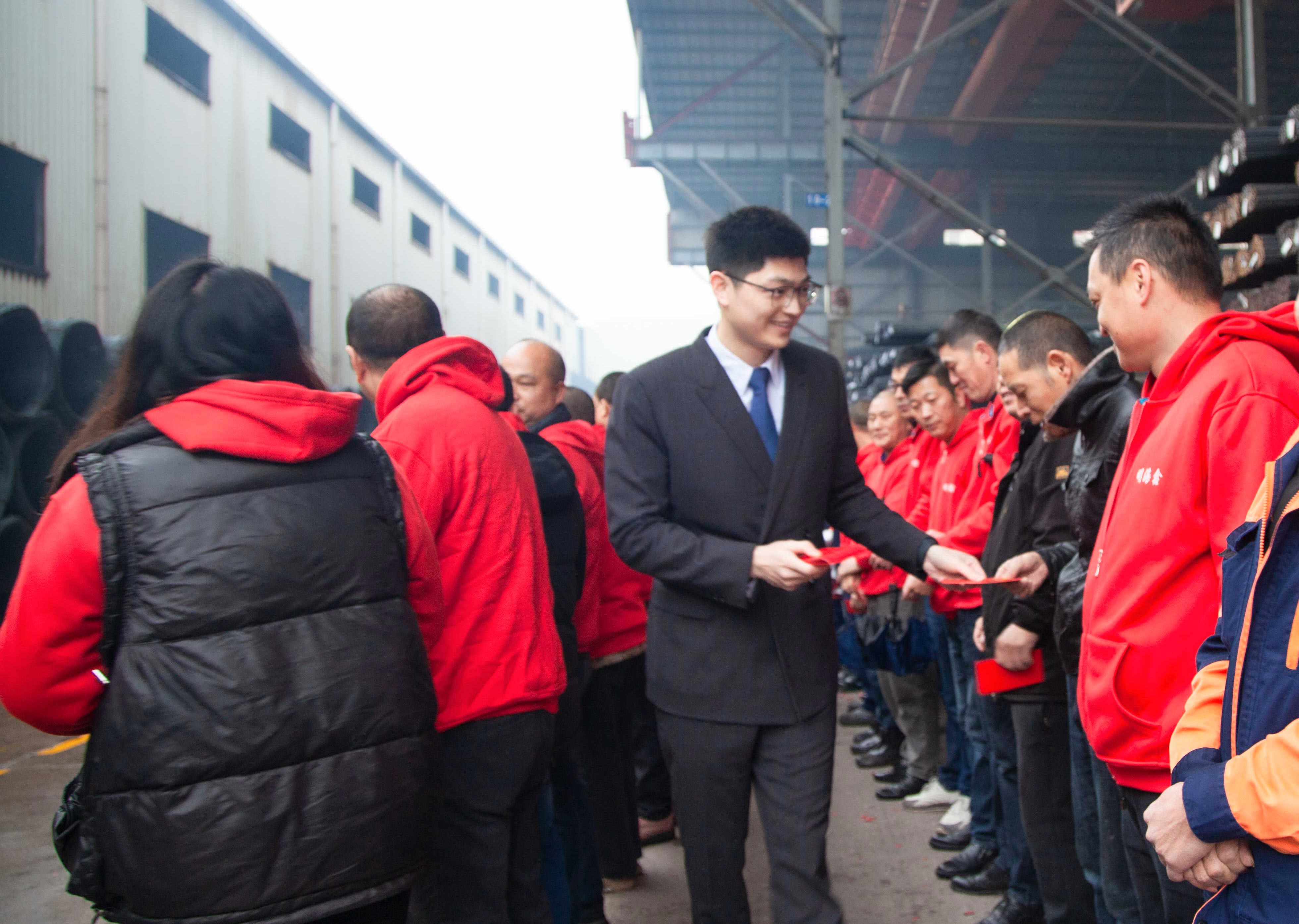 明海鑫開門紅!一大早公司總經理高俊、高錦海就下到一線倉庫給員工們送來開業紅包,并祝員工們新年快樂!一年都紅紅火火!