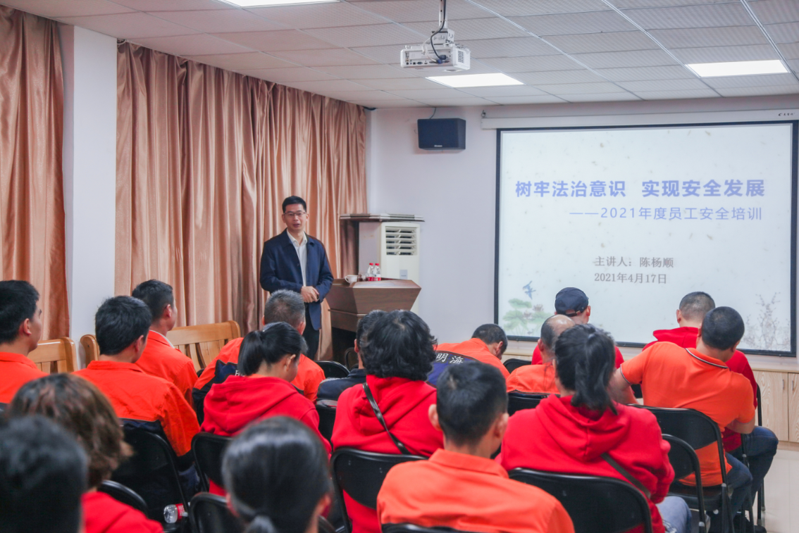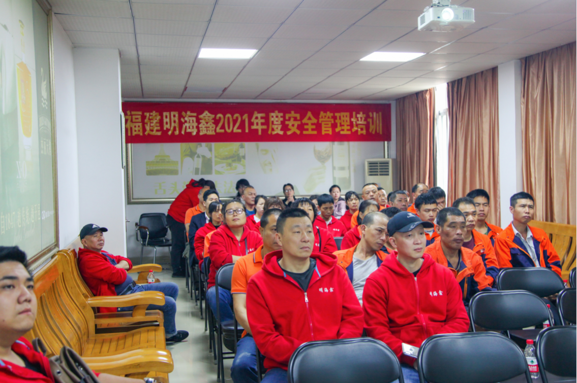 4月17日上午福建明海鑫組織開展2021年度安全管理培訓。公司倉儲部安全員、倉管員、裝卸工、行車工等全體員工共計40余人參加了培訓。